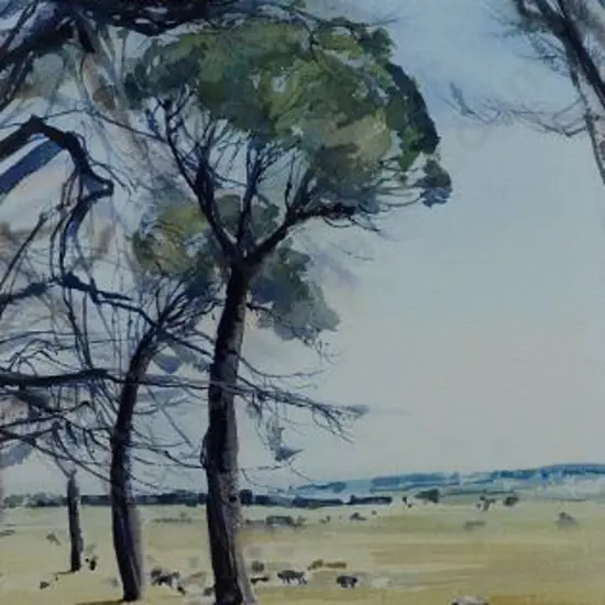 GHEE, Robert Edgar Taylor 1869-1951) - Australia - Gum Trees with Settler's Home Estimate: $750 - $1,000