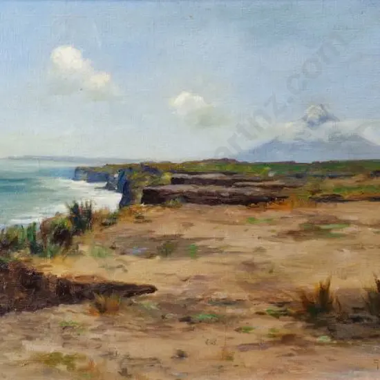 BUTLER, George Edmund (1872-1936) - Cliffs at Patea with View of Mt Egmont (Taranaki) Estimate: $600 - $900
