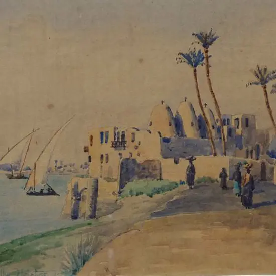 FLETCHER, Blythe (1890-1949) - North African Waterfront with Palm Trees Estimate: $300 - $500