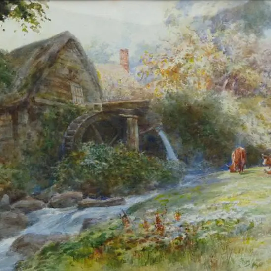 WORSLEY, Charles Nathaniel (1862-1923) - Stream with Watermill and Grazing Cattle Estimate: $300 - $400