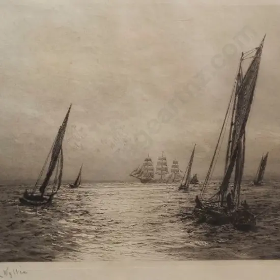 WYLLIE, William Lionel (1851-1931) - Yachts at Sea with Large Sailing Ship Estimate: $300 - $500