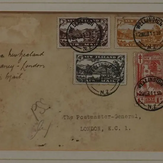 PHILATELY - AIRMAIL Envelope NZ - First Christmas Airmail NZ-UK - with letter from Postmaster General Estimate: $350 - $500
